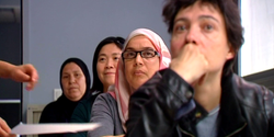 « Fatima est femme de ménage dans un quartier de Lyon. Elle est séparée de son mari et habite seule avec leurs deux filles, âgées de 15 et 18 ans. Elle maîtrise mal le français, qu’elle continue d’apprendre aux cours d’alphabétisation, entre ses journées de travail. Elle vit avec frustration cette séparation par la langue avec ses filles, nées en France.